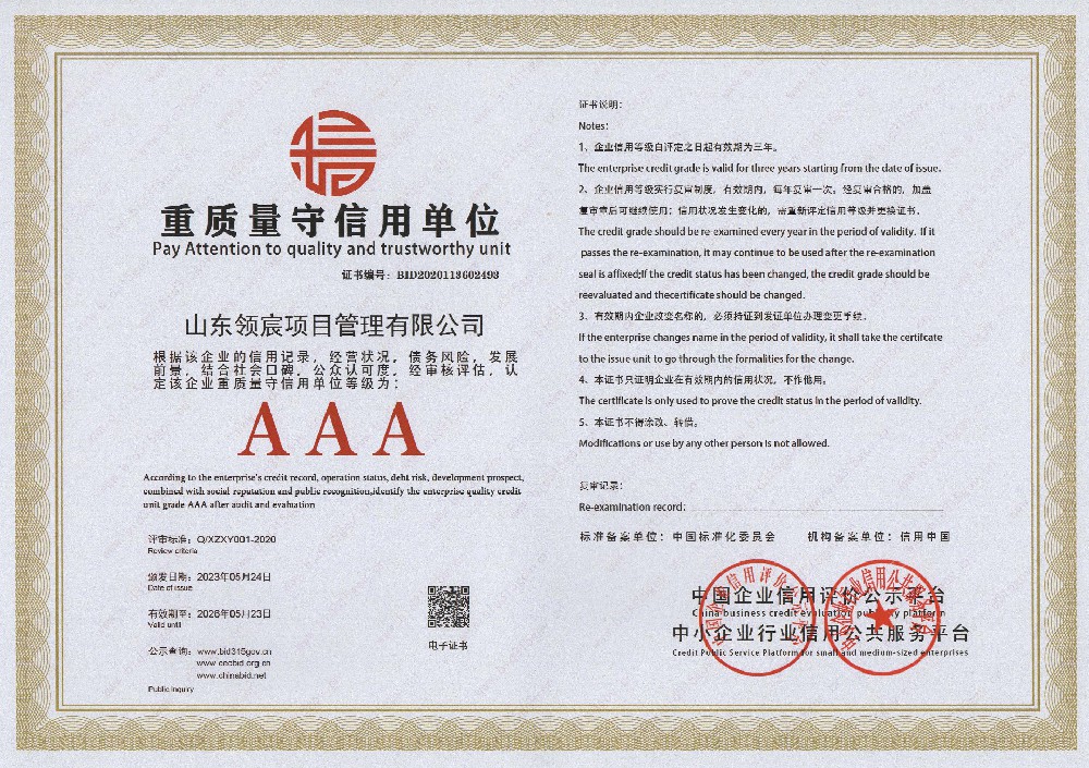 山東領宸項目管理有限公司是一家以全過程工程咨詢?yōu)楹诵牡淖稍兎展荆竟粳F具備工程造價咨詢乙級資質,房屋建筑工程、市政工程監(jiān)理乙級資質和招標代理備案。公司擁有專業的工作團隊及豐富的行業經驗,在行業領域內具有雄厚的實力,企業管理人員擁有行業20年以上的資深行業工作經驗。公司現有專業技術人員50余人,具有一級注冊造價工程師、注冊監(jiān)理工程師、一級注冊建造師、二級注冊建造師、招標師等工程類國家注冊執(zhí)業資格證書人員合計30余人以及高級工程師3人,持證上崗率達到90%......
